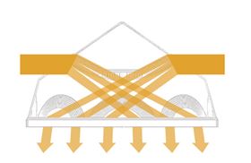 不僅使上午及下午陽光轉(zhuǎn)向?qū)?,還對光線進(jìn)行聚焦,提高采光效率。